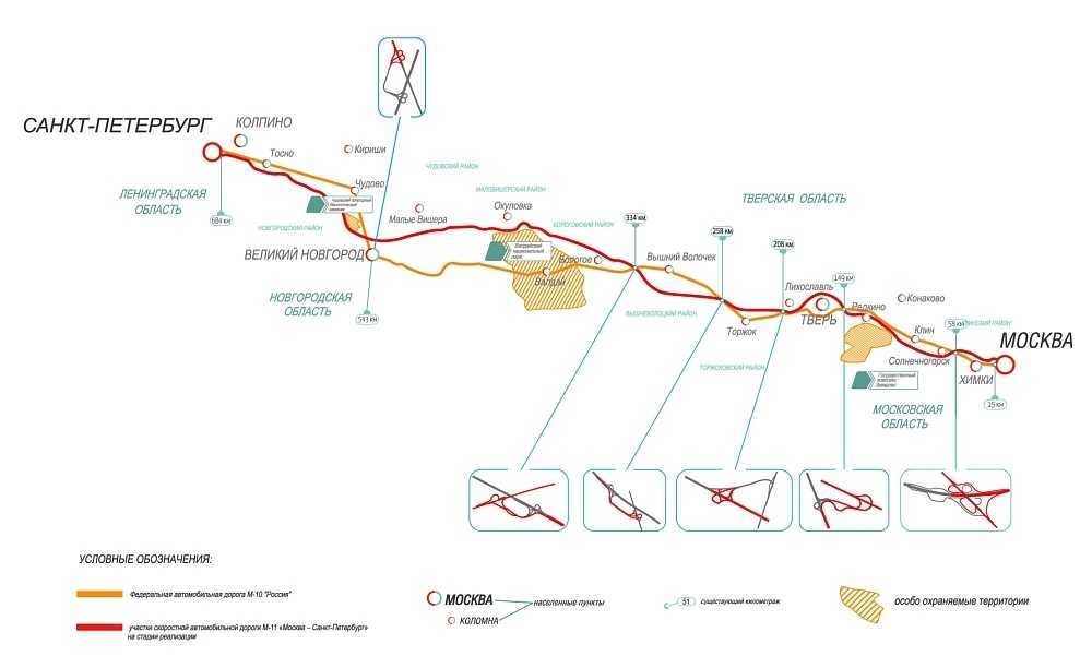 Схема дороги М-11.