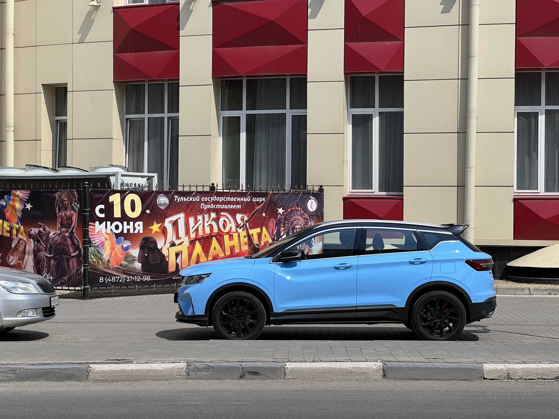 У нас на тестировании был автомобиль ярко-синего цвета, смотрится живо и нарядно. На дорогах несколько раз видел Geely Coolray в красном цвете, но чаще всего, конечно, встречаются чёрно-серебристые собратья.