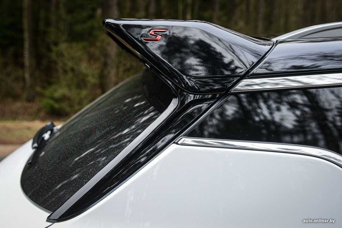Мне на тестирование предложили машину в максимальной комплектации, поэтому она щеголяет красными суппортами, чёрными дисками, спойлером солидного размера на крыше и четырьмя патрубками.