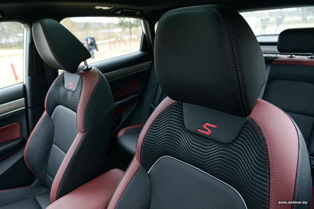 Передние кресла имеют красивый дизайн, цепкую поддержку и комбинированную обшивку. Красный кожзам украшает еще центральный тоннель и верхнюю часть передней панели
