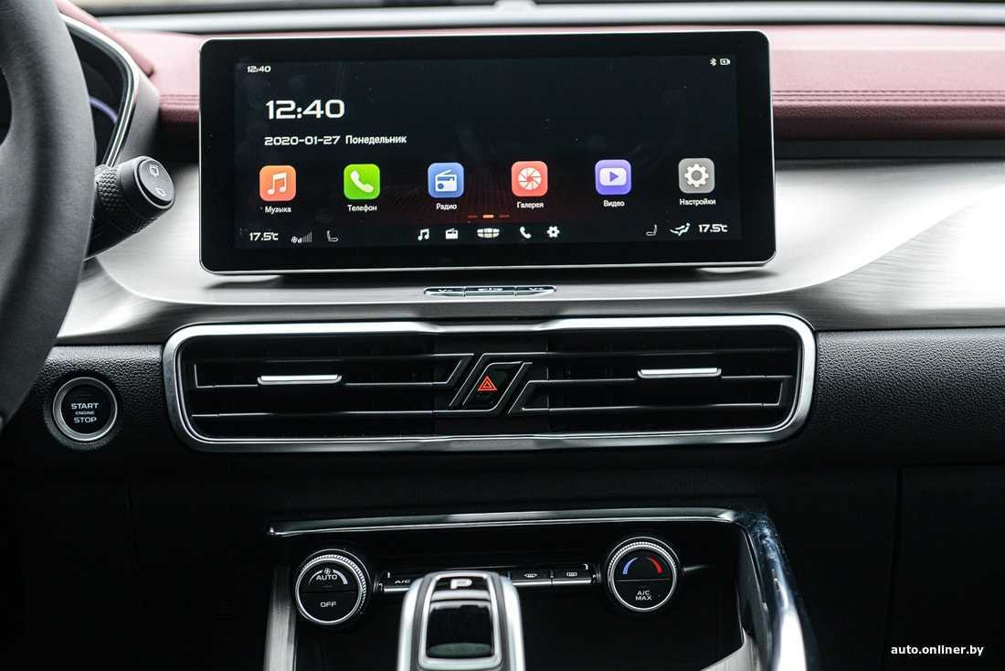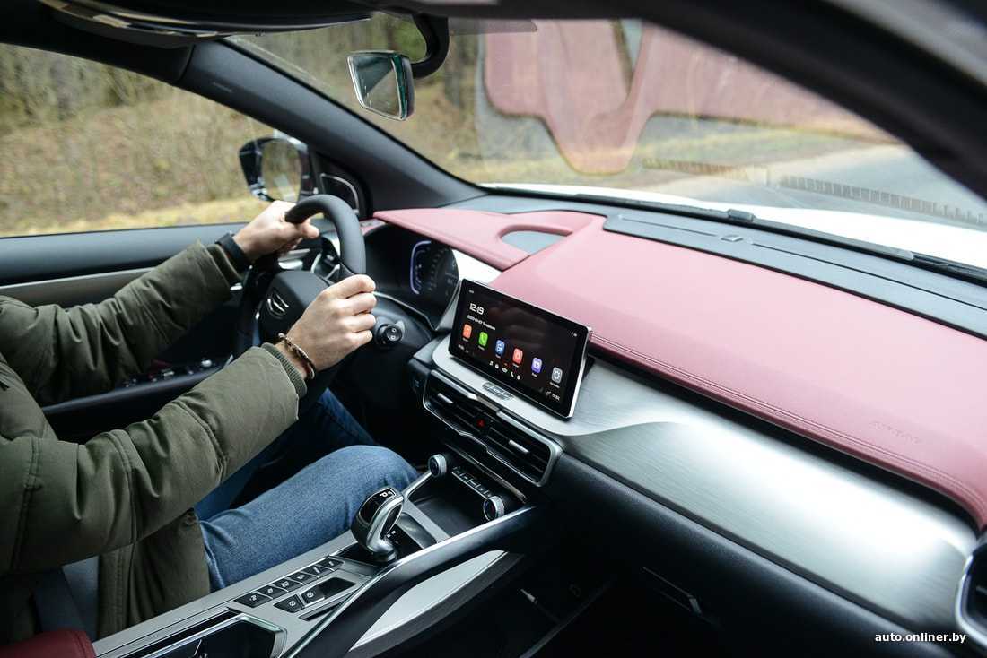 А вот в салоне придраться к чему-либо сложно. Если бы такой интерьер сделали в Hyundai или Toyota, рекламные брошюры уже пестрели бы словами «премиальный» или «люксовый». В Coolray действительно все дорого-богато. Водительское кресло имеет электрорегулировку, по-спортивному скошенный руль меняет угол и вылет. За баранкой радует глаз цифровая приборная панель, чья картинка не хуже, чем у последних Volvo. А горизонтальный сенсорный дисплей мультимедийной системы — лучший в классе по качеству изображения и размеру. У экрана олеофобное покрытие и отличная цветовая насыщенность.