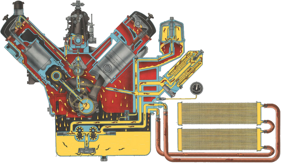 Система смазки – направление смазки в трущиеся точки и на участки для дополнительного охлаждения. Комплектуется масляной помпой, подключённой к коленвалу, имеет разветвлённую систему трубок.