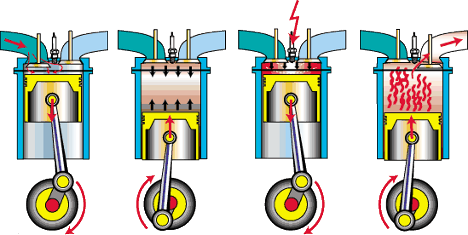 Основу функционирования любого ДВС составляет преобразование энергии горения в механическую работу. Обычно в классических моторах, устанавливаемых на легковых автомобилях, каждый цилиндр действует по четырёхтактной схеме: