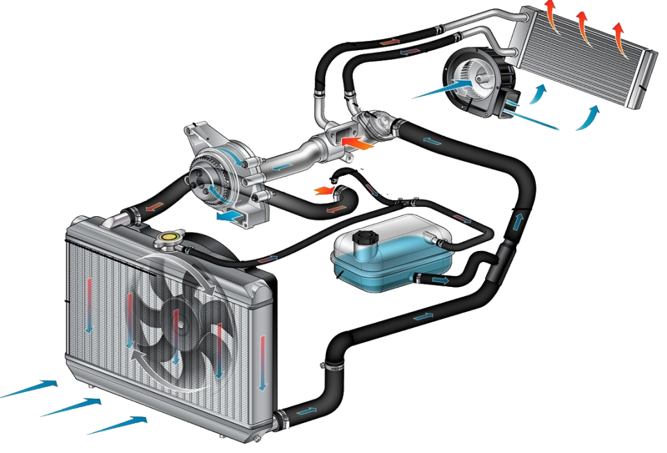 Система охлаждения – поддержание требуемого температурного режима. Используются теплообменник (радиатор), рубашка охлаждения, теплоноситель (антифриз и пр.), термостат и водяной насос.