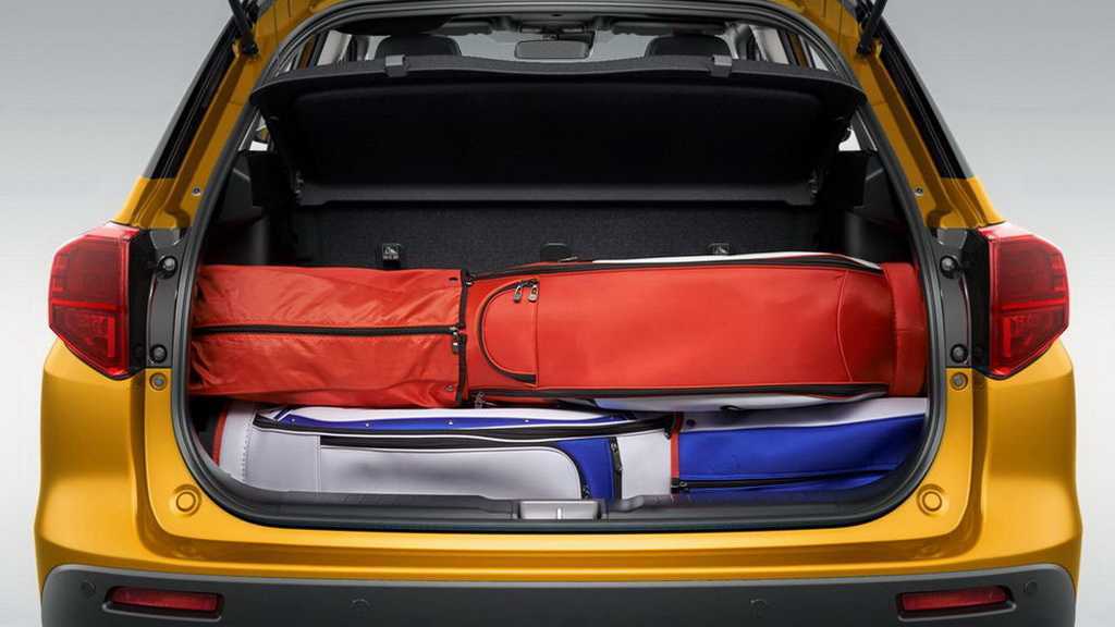 Объем багажника новой модели Сузуки Гранд Витара 2018 вмещает 380 литров, может перевозить большое количество вещей. С такой машиной можно даже отправиться на охоту или рыбалку и спокойно перевезти все оснащение.
