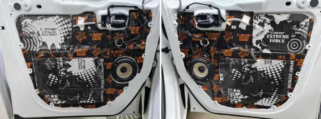 Примерно такая же ситуация и с высокочастотными динамиками расположенными в сдвижных дверях, только вместо штатных, мы ставим высокочастотники из комплекта Best Balance.