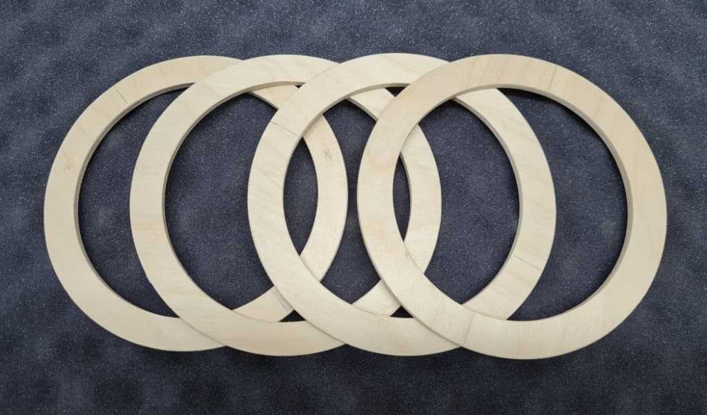 Для установки акустики нам потребуются проставочные кольца. Кольца вырезаем из фанеры толщиной 8 мм, т.к. запаса по толщине почти нет, но тем не менее, нам этого достаточно.