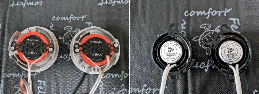 Сравнение размеров штатной акустики и акустики от Focal и Best Balance