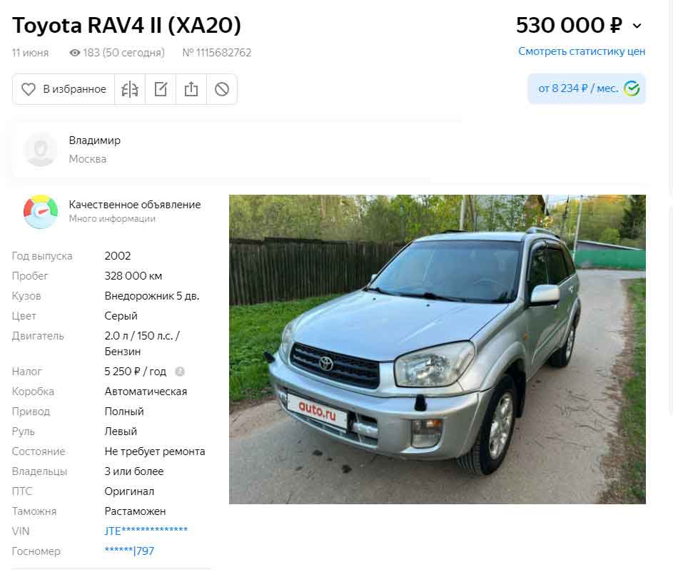 Стоимость RAV4-2 на вторичном рынке в 2022 году