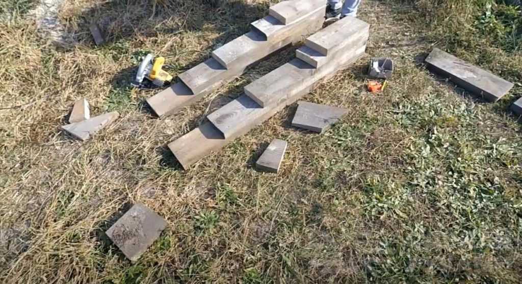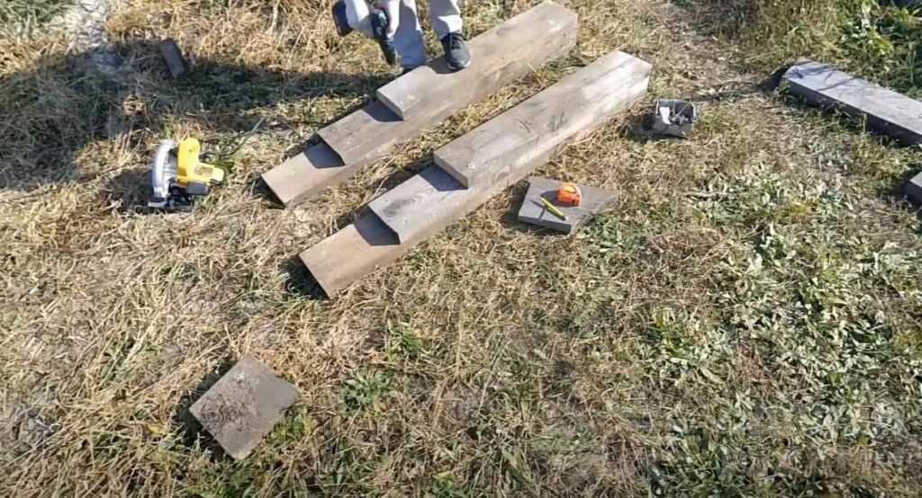 Отпиливаем доски подходящего размера, и наращиваем нужную высоту опорных частей переносной эстакады.