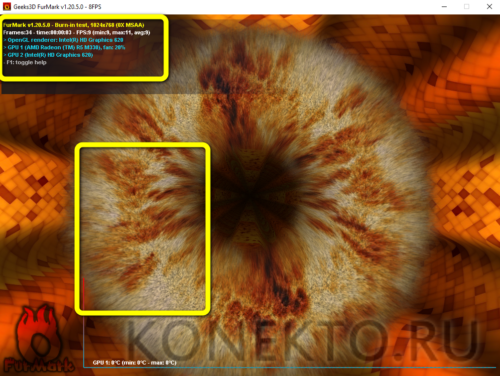 И оценить качество прорисовки «меховой» текстуры в появившемся окошке. Здесь же, в левом нижнем углу, будет показано количество возникших во время работы видеокарты ошибок.