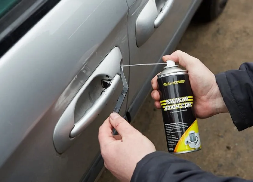 Еще одно назначение смазки – размораживание замков.