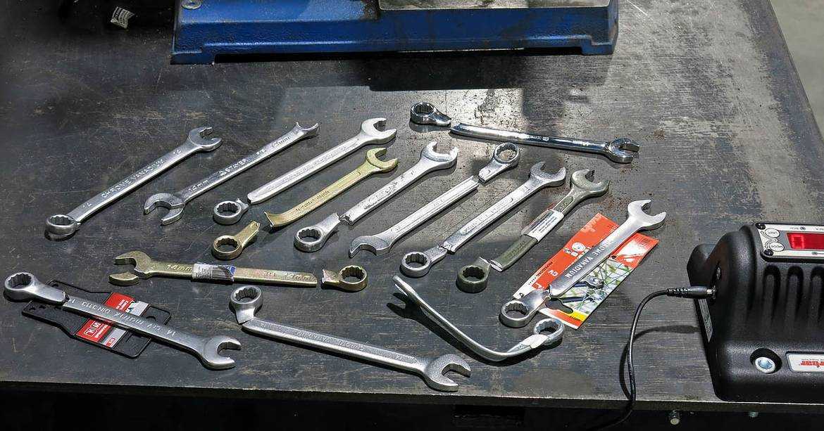 Судя по маркировке, легирующие хромованадиевые добавки отсутствуют у 4 ключей из 12 образцов — у марок Stayer Master, Stayer Techno, «Механик» и «Сибртех».Для проведения испытания мы воспользуемся двумя нормативными документами: ГОСТ 2838-80 «Ключи гаечные. Общие технические условия» и ГОСТ 16983-80 «Ключи гаечные комбинированные».Первым делом были проведены замеры ключей.