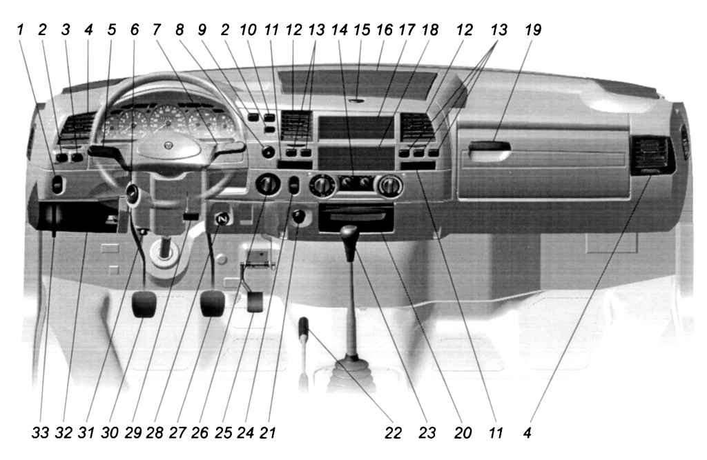 При включении зажигания на панели приборов загорается сигнализатор (1 или 33 (см.
