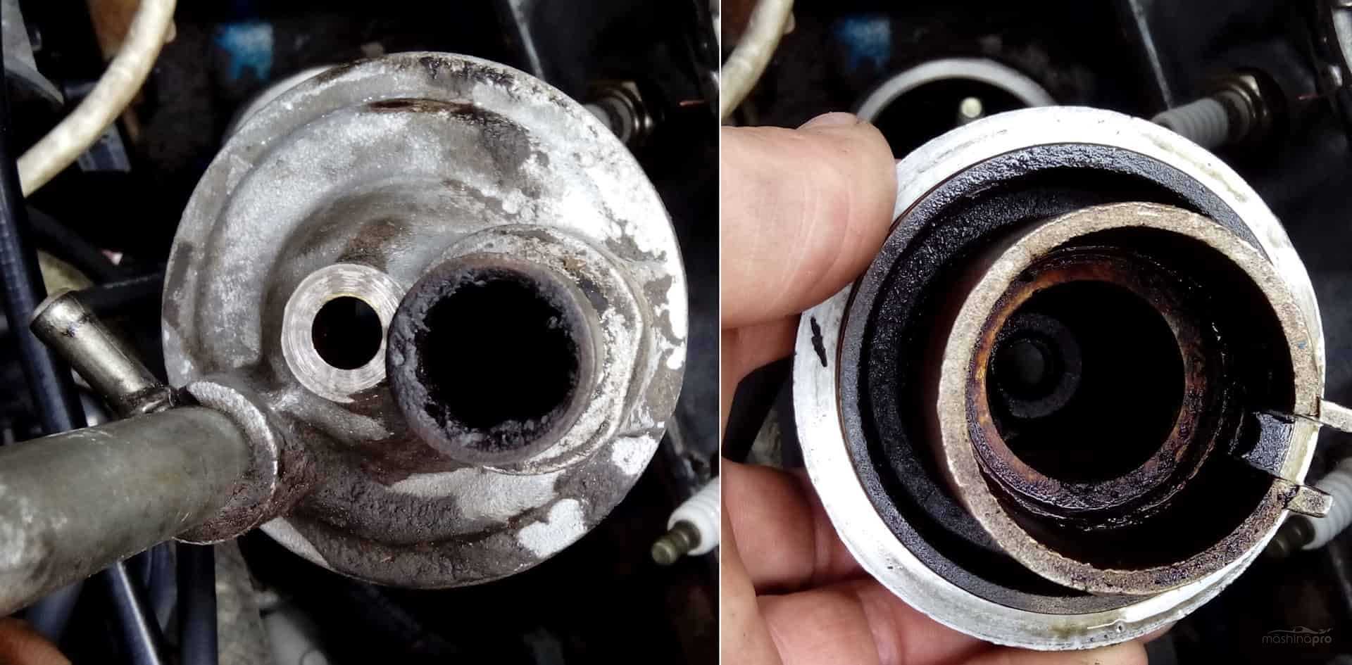 Рано или поздно система вентиляции картера двигателя перестает эффективно справляться со своими обязанностями так как ей все время приходится иметь дело с картерными газами, несущими в себе частицы масла, сажи и пр. Все это со временем забивает маслоотделитель системы и оседает в виде сажевого налета на стенках ее шлангов и трубок.