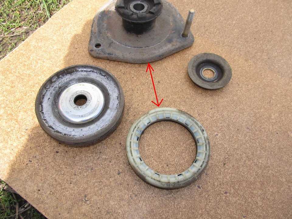 Но саму опору на этих авто менять не обязательно (если состояние е удовлетворительное), достаточно после демонтажа, снять с нее подшипник (установлен со стороны опорной чашки), а на его место поставить новый. А далее все собирается обратно.