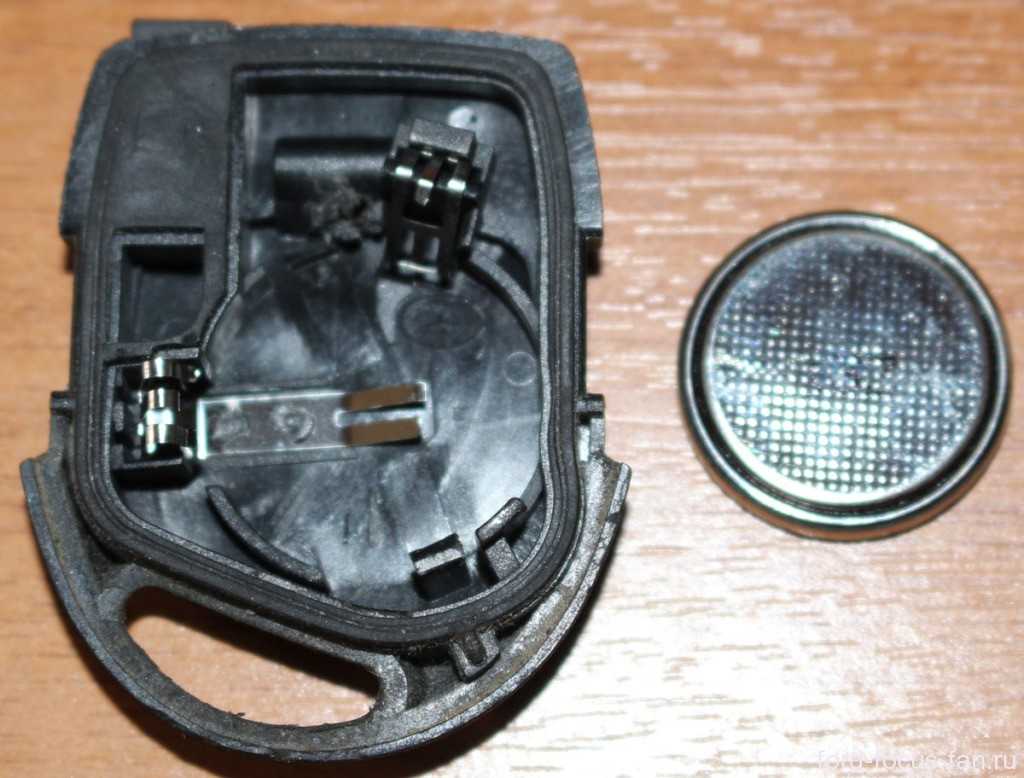 Замена батарейки в ключе процесс деликатный. Как видно на фотографии ниже, батарейка фиксируется пластмассовыми маленькими фиксаторами, в моем случае — одним, второй сломан.