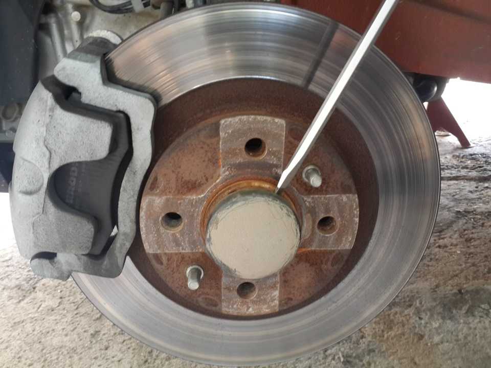Используя ключ на «12» откручиваем болты крепления переднего диска и снимаем его. Если диск прикипел, обработайте посадочное место WD-40 и через деревянный брусок обстучите его вдоль места посадки молотком.
