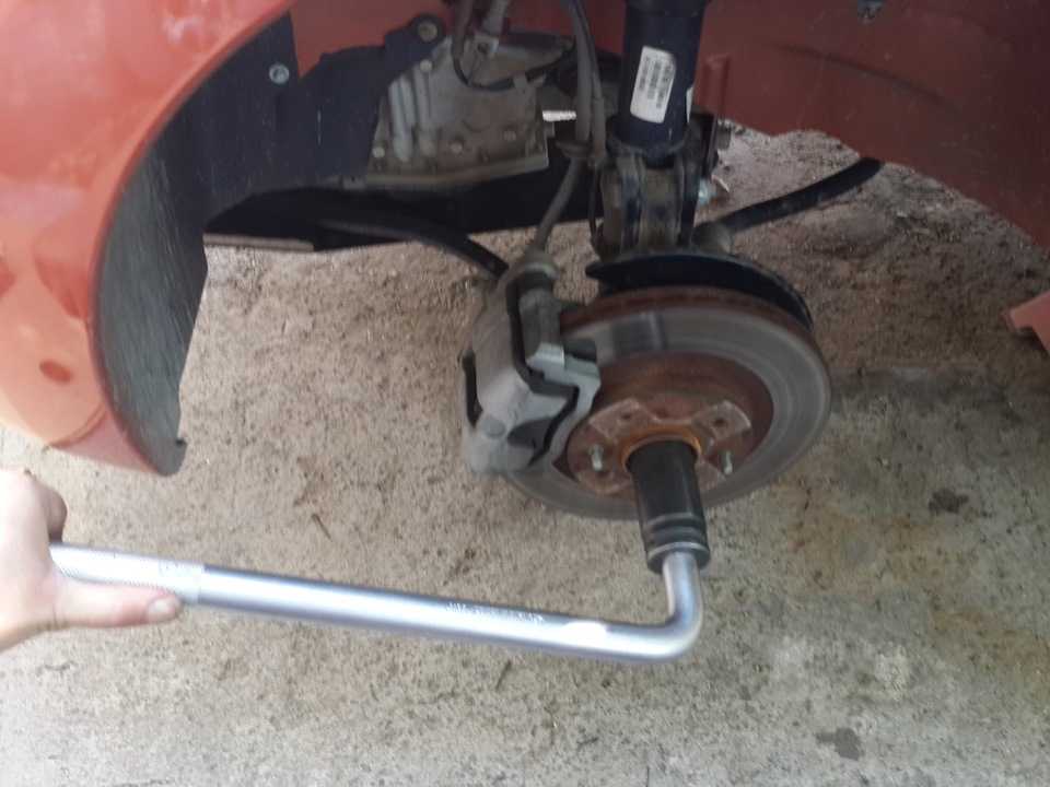 Торцевой головкой на «30» с применением большого рычага откручиваем ступичную гайку.