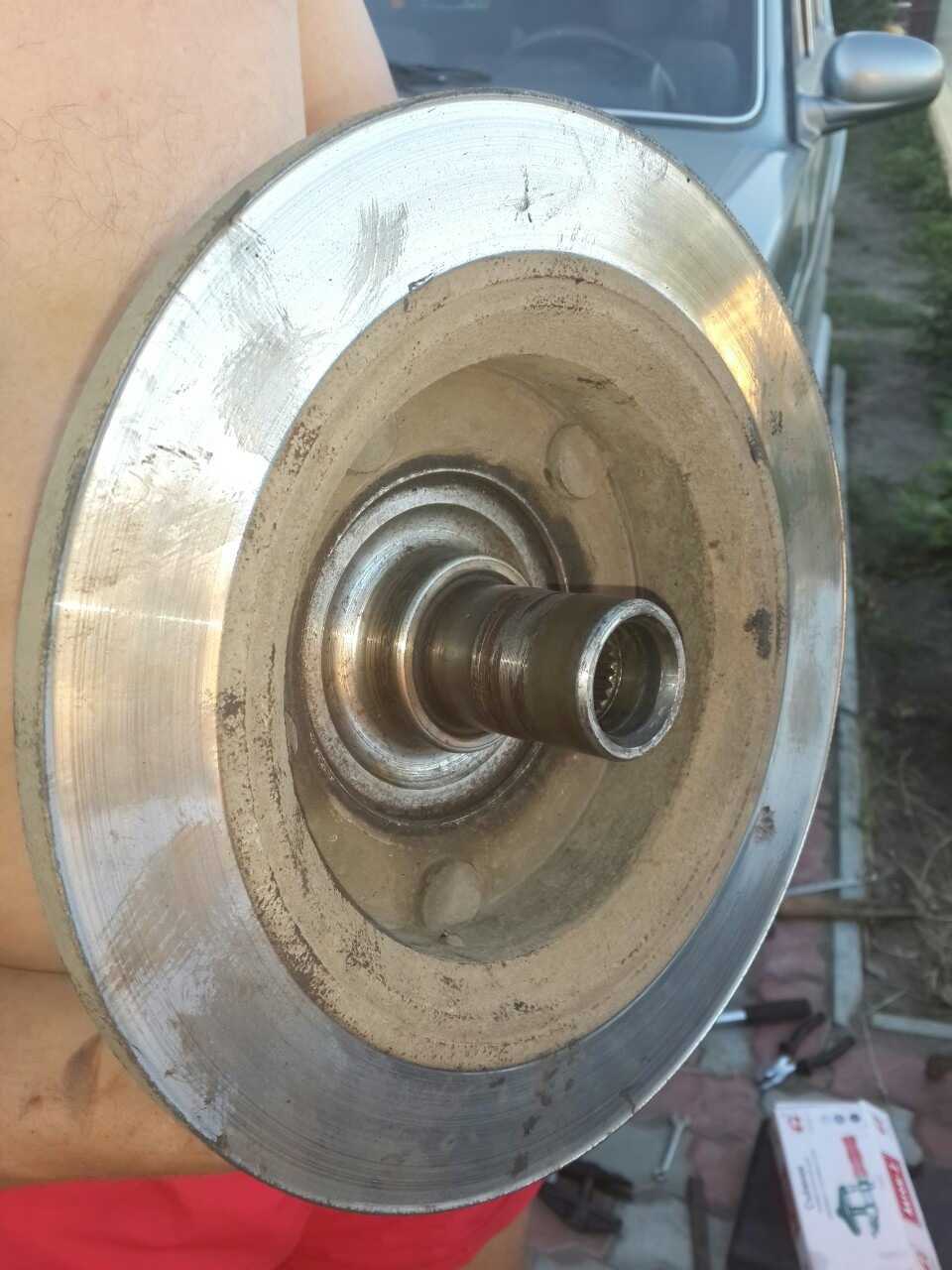 Демонтированная ступица с тормозным диском, состояние ступицы было хорошее и этот факт меня очень порадовал, хоть не надо брать новую!
