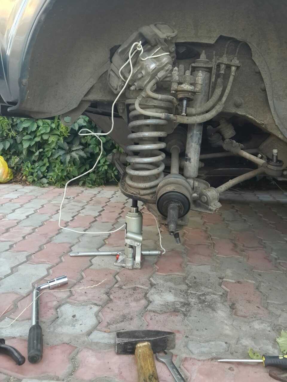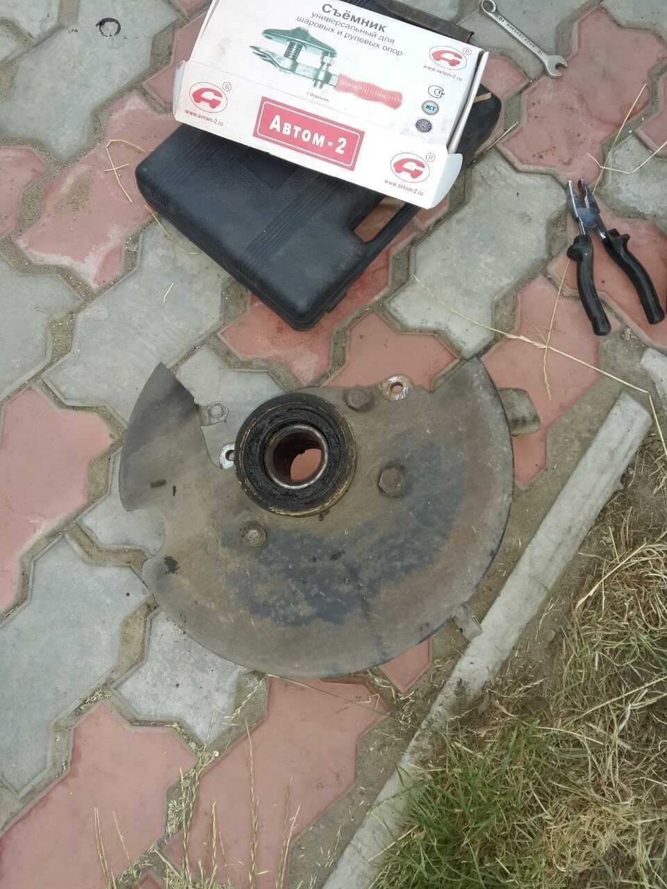 Замену произвел в два вечера, на каждое колесо по вечеру после работы. Работа в принципе нормальная и не особо тяжелая, но без съемника делать там нехер — шаровые и рулевой наконечник думаю не снимешь!