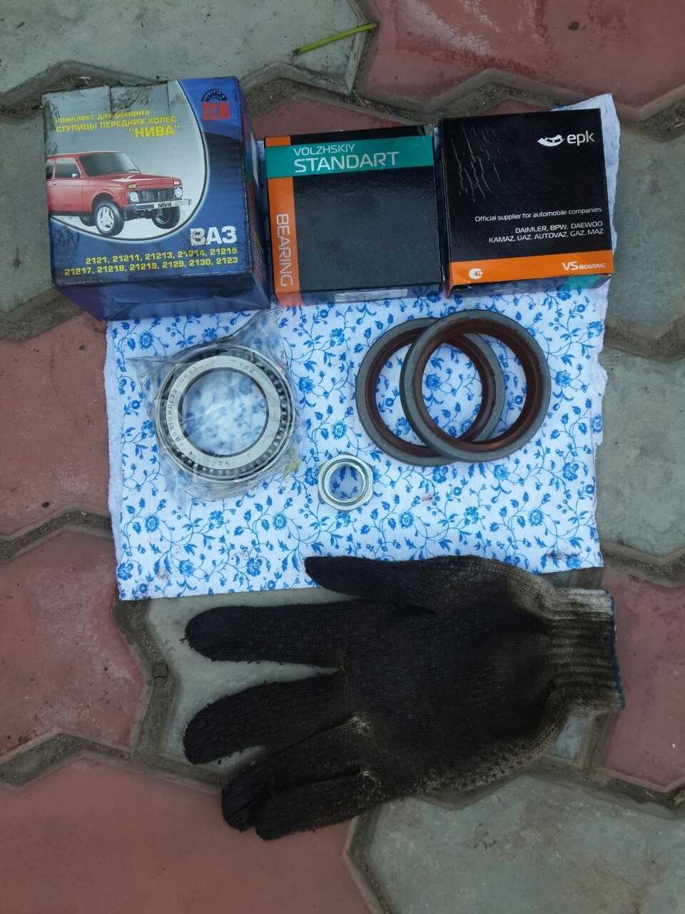 Вот набор для ремонта ступиц 2121 и на тряпочке все, что в него входит! Кроме грязных перчаток конечно!