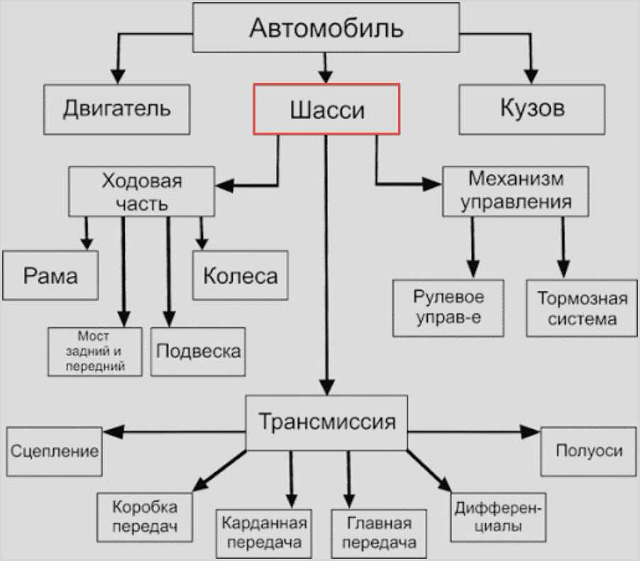 В соответствии с выполняемыми функциями шасси состоит из отдельных систем: