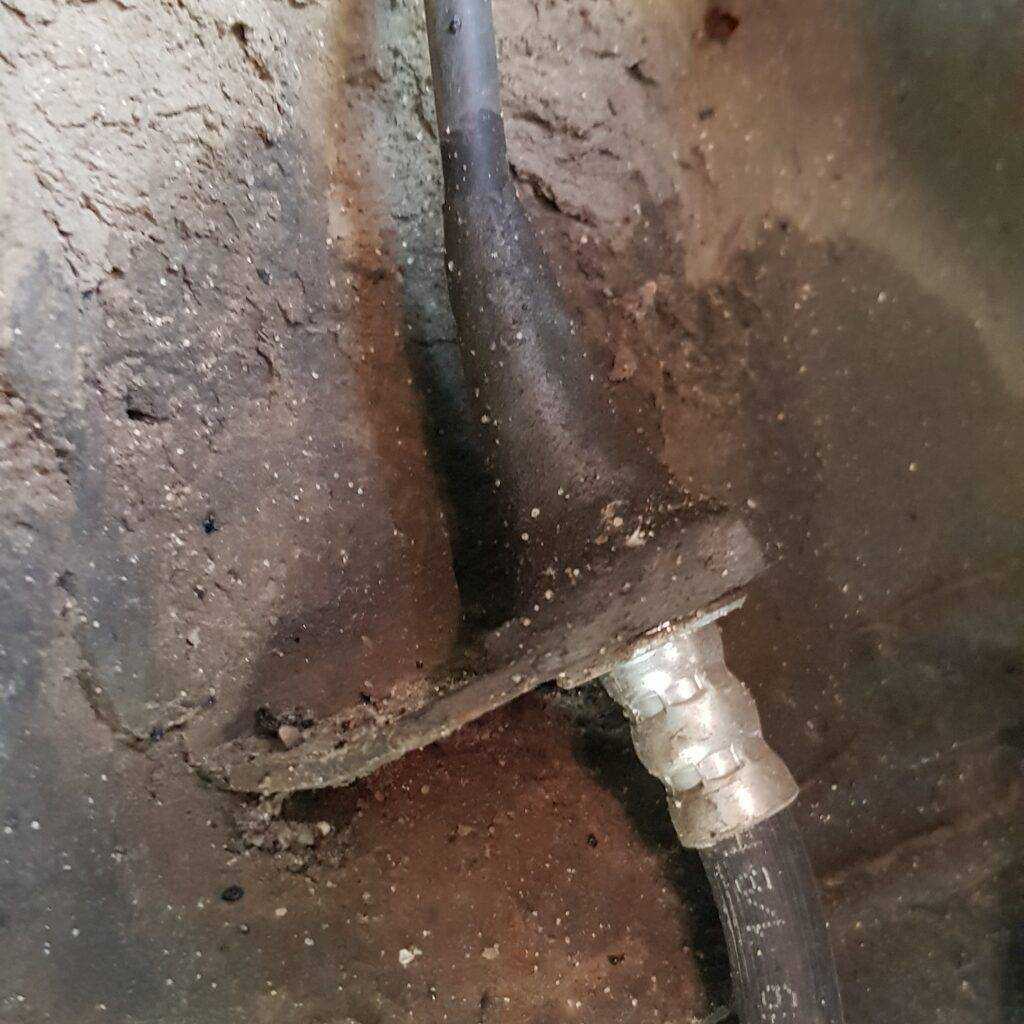 - Очистка грязи щёткой, обработка стыков аэрозольной смазкой и откручивание муфты железной трубки от шланга.