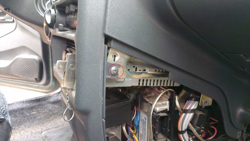 Затем отвинчиваем саморез щитка панели приборов к кронштейну слева.