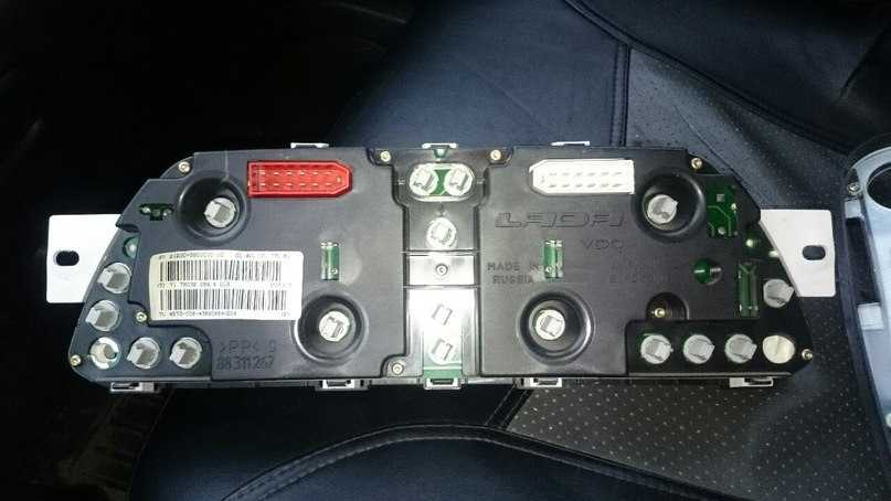 - Демонтированный приборный щиток переворачивают, так как лампочки находятся сзади.