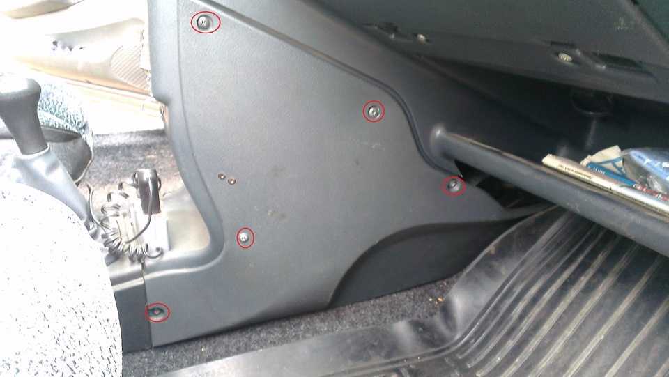 Выкручиваем четыре самореза комбинации приборов. Два с правой стороны.