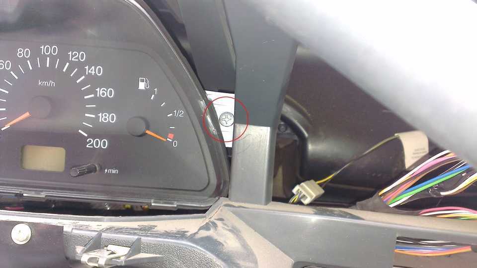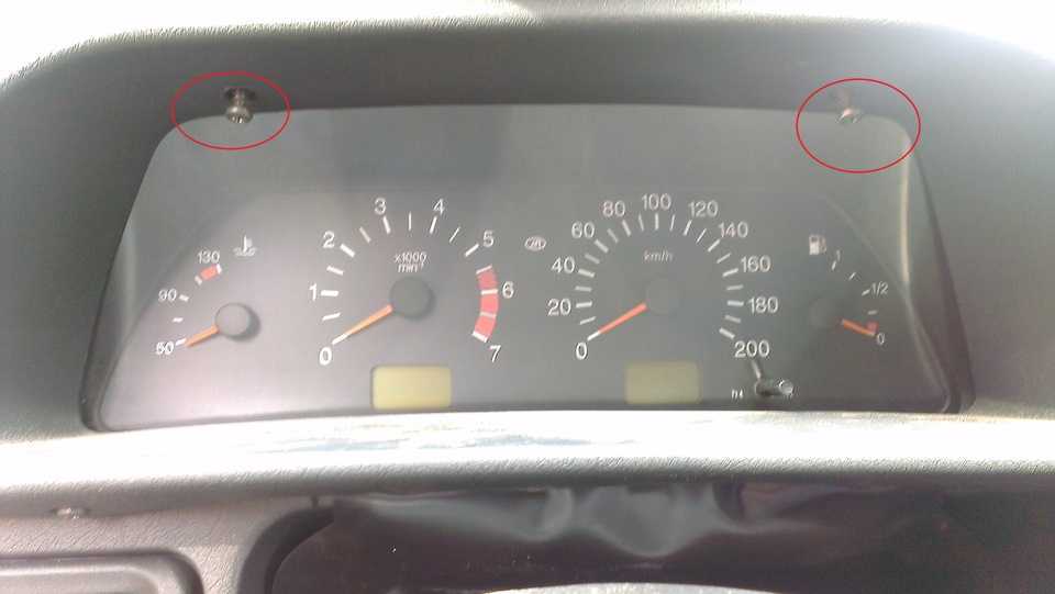 - После снятия торпеды приборной панели при помощи крестообразной отвертки нужно отвинтить два крепежа, которые фиксируют спидометр.
