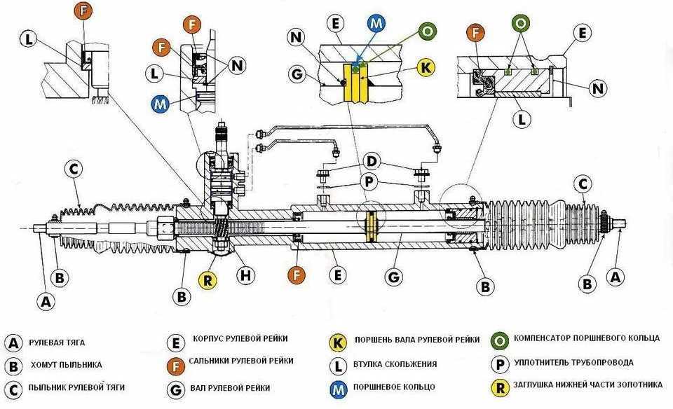 В рулевой рейке установлено немало уплотнителей, но не все из них являются сальниками, то есть деталями, разделяющими жидкую/воздушную среду с одинаковым давлением: