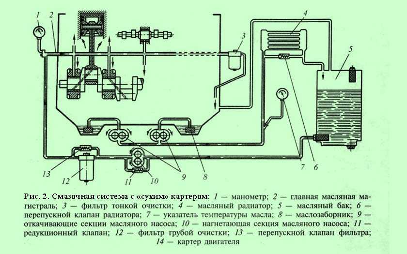 Конструкция системы смазки для разных видов и типов двигателей различна и может существенно отличаться дрыг от друга наличием, или отсутствием тех или иных компонентов или систем.