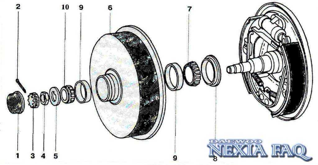 Так же перед ремонтом необходимо изучить расположение элементов ходовой части авто согласно схеме: (обратите внимание на поворотный кулак — позиция27 , подшипник — позиция9 )