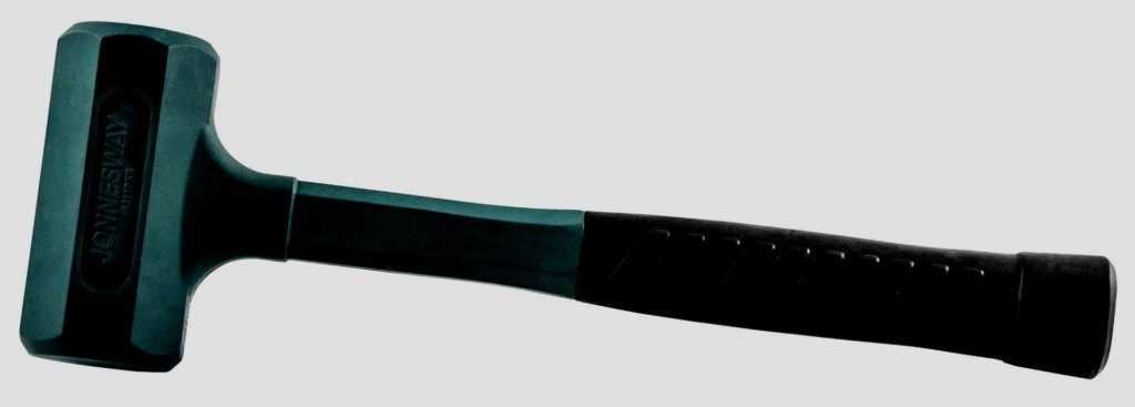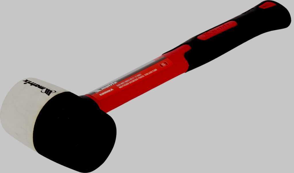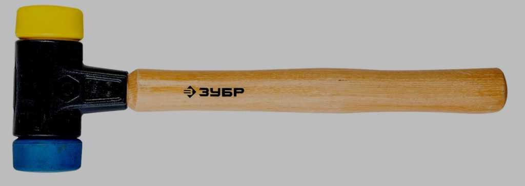 Ударная головка – резиновая. Подходит для обработки плитки, древесины и ламината. Широко используется при проведении кровельных и жестяных работ, укладке плитки как напольной, так и тротуарной, для ремонта автомобилей. Действует в паре со стамеской и долотом. Качественно подгоняет детали при сборке мебели, не повреждая и не деформируя их. Оставляет в целости лакокрасочный слой. Вес конструкции – 450 г, головка шириной 6 см. Длина ручки – 260 мм.