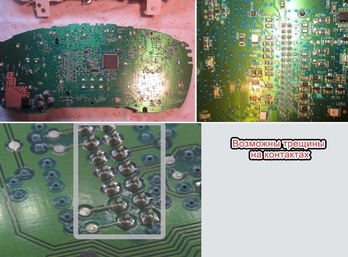 Как правило, сброс ошибок бортового компьютера и снятие клеммы с АКБ ничего толком не даёт. Ошибка может исчезнуть на какое-то время, но появится снова. От режима самотестирования приборной панели тоже толку мало — тест пройдёт успешно, если в этот момент шина CAN будет работать нормально. Единственный выход — пропайка контактов на плате приборного щитка.