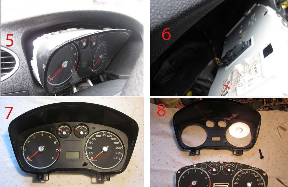 Чтобы до них добраться, необходимо снять и полностью разобрать приборку. Делаем это так: