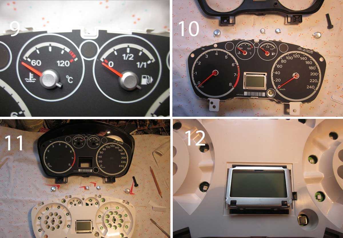 - Стрелки температуры и топлива поставьте на нули при отключенном зажигании.