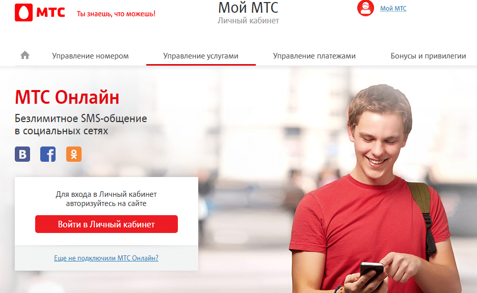 Для этого нужно войти в личный кабинет, нажав на соответствующую кнопку. Придется авторизоваться, введя номер телефона и пароль, который придет в СМС-сообщении. Это если абонент еще не был зарегистрировать в «МТС Онлайн». Если же у него есть пароль, он вводит именно его.