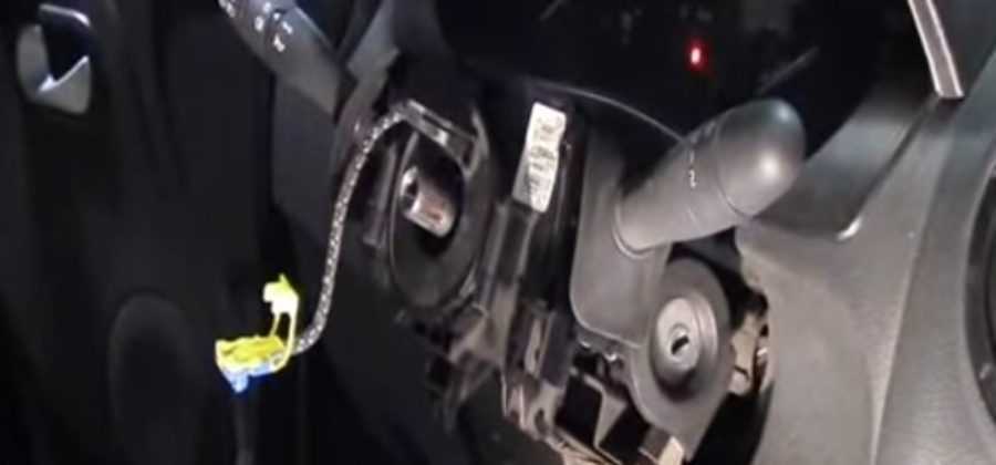 Зачастую проблема именно в том, что шлейф белая лента рвется в основании обоймы. Последовательность выполнения замены Замена подрулевого шлейфа осуществляется следующим образом: Приступаем к снятию верхнего и нижнего кожухов на рулевой колонке.
