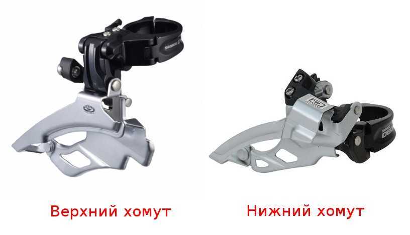 Крепление переключателя хомутом к раме имеет 3 стандарта (зависит от толщины трубы рамы велосипеда): 28.6, 31.8, 34.9 мм. Некоторые переключатели имеют в комплекте специальные прокладки, которые могут вставляться внутрь хомута, тем самым давая возможность устанавливать переключатель на рамы с меньшим диаметром подседельной трубы. Плюс ко всему бывают модели передних переключателей с верхним и нижним хомутом.