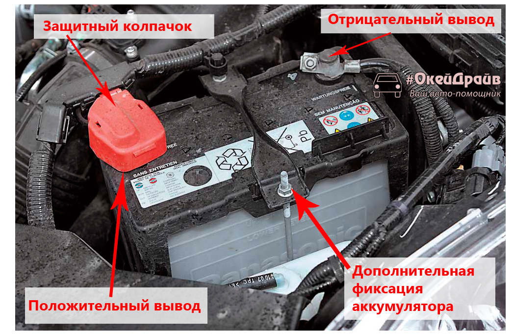 Напомним, что на корпусе АКБ возле каждого вывода стоят о и «минус». Положительный электрод обычно красного цвета, отрицательный — синего