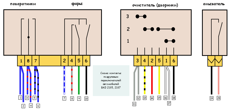 Номера контактов переключателя стеклоочистителя и омывателя