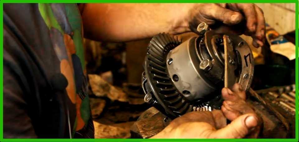 После всей проделанной работы нужно поставить ведомую шестерню на ее первоначальное местоположение, то есть в сам корпус дифференциала, после чего нужно затянуть все необходимые болты. Именно сейчас начнется уже сама непосредственная и долгожданная регулировка люфта. После того, как все детали были установлены, а все гайки были затянуты до минимального упора, нужно провернуть ведомую шестерню.