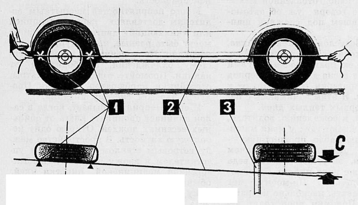 - Отойдите от машины на некоторое расстояние и посмотрите на положение передних колес, сравнивая их с плоскостью задних.