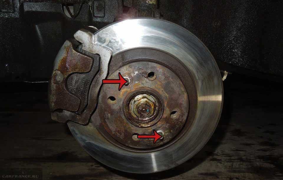 Снимаем тормозной диск, путем отвинчивая двух направляющих колеса.