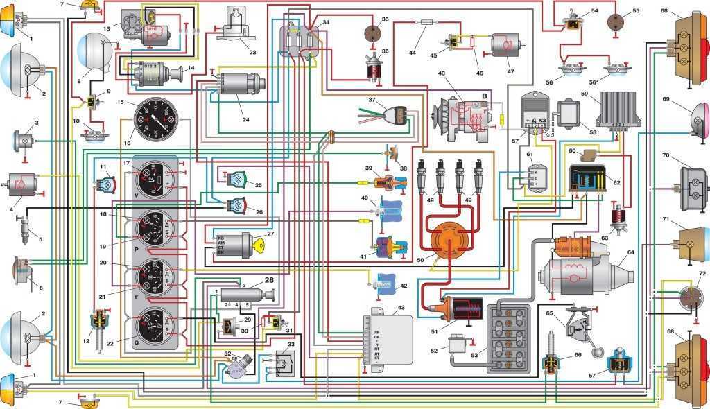 Итак, схема электропроводки УАЗ-3303 старого образца прошла несколько модификаций, но кардинальных изменений не претерпела. Собственно, в этом не было особой необходимости, поскольку она безотказно работала в самых экстремальных условиях, показав себя надёжной системой.