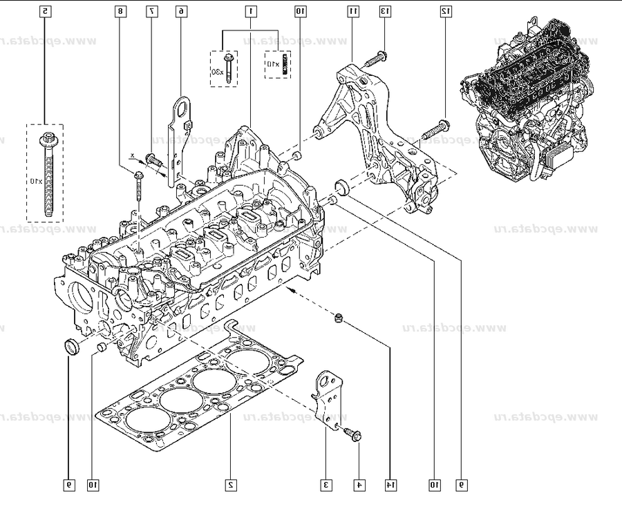 Цилиндры расточены непосредственно в блоке. Головка блока цилиндров двигателя Renault Megane 2 1.