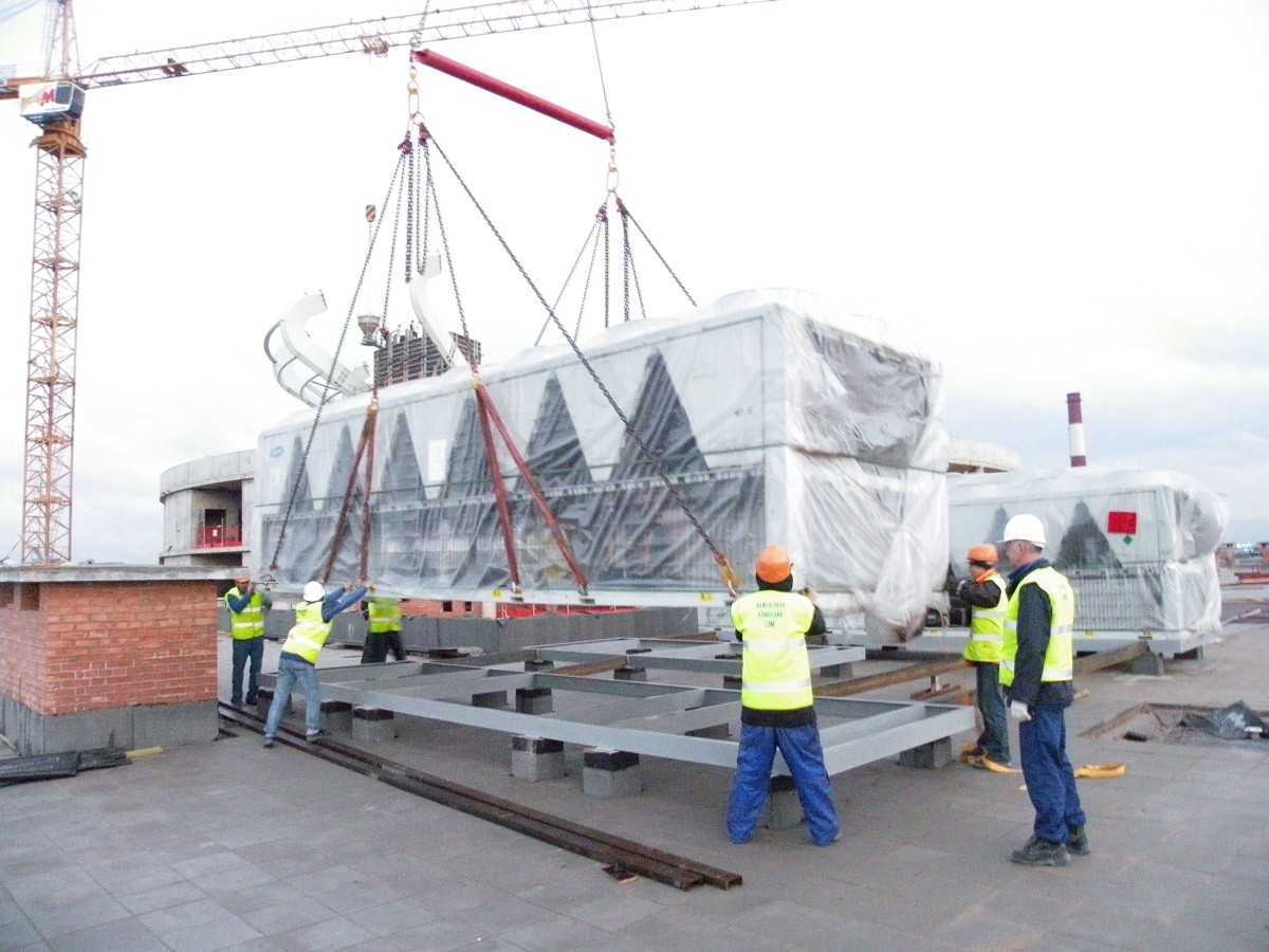 - крупные габариты внешнего блока системы, требующие установки на крыше, отдельного технического помещения, либо целого этажа с необходимым объемом уличного воздухопотока для охлаждения.